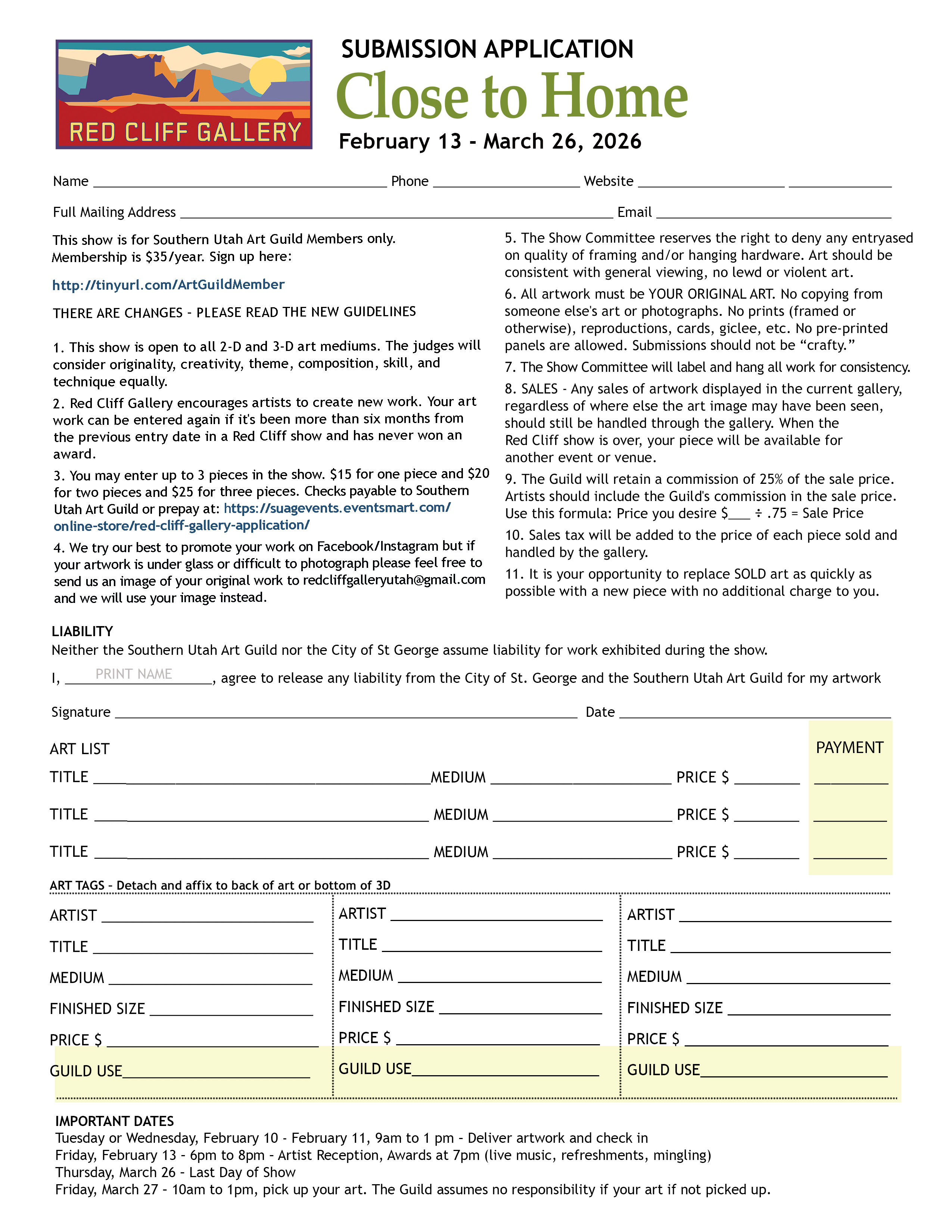Red Cliff Gallery is one of two art galleries within the Southern Utah Art Guild. The other is the Arrowhead Gallery which is a juried, community gallery.