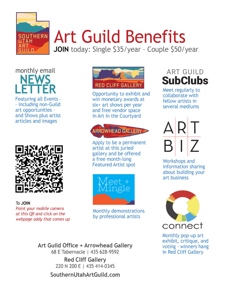Southern Utah Art Guild is the core organization that collaborates with other art businesses and organizations for the community and artist’s benefit.
